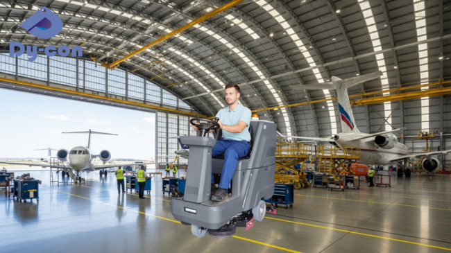 Keep Your Hangar Floors Spotless & Safe with the Dycon D8 Ride-On Scrubber